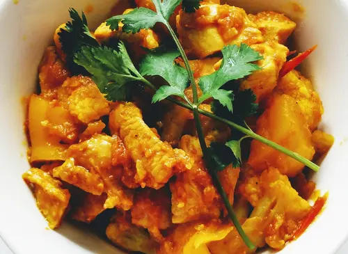 Kana, kasvikset, tomaatti, sipuli,valkosipuli, inkivääri, yrtit, chilijauhe, kurkumajauhe