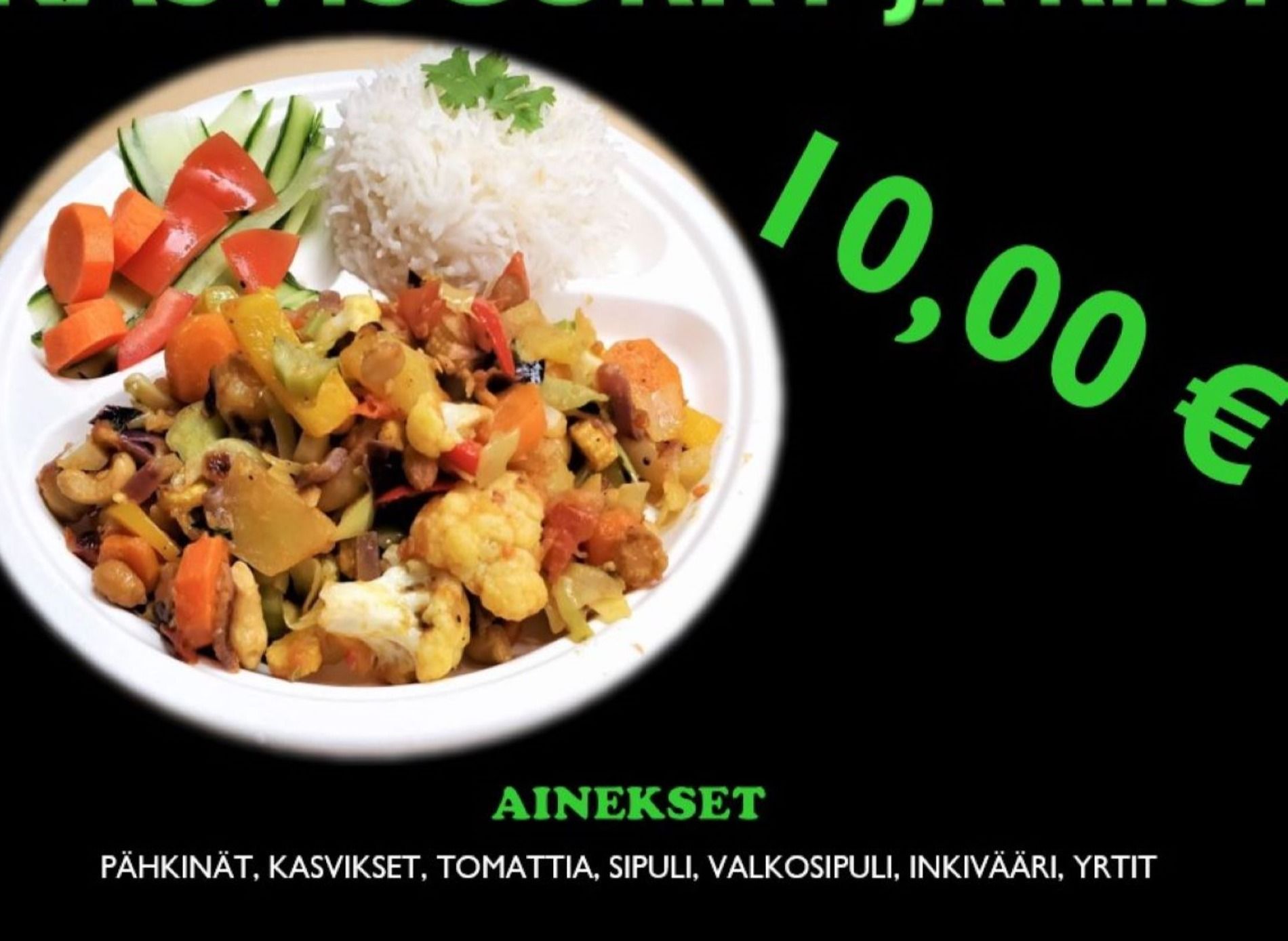 Ainekset: Kasviscurry, Riisi,Salaatti